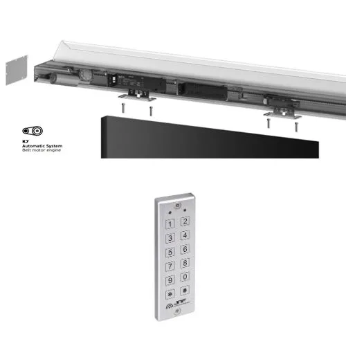 JNF K7 schuifdeurrail set , automatich systeem , snaar aangedreven, met cijfercode paneel, rail lengte 2000 mm, deurbreedte max 950 mm, deurgewicht 150 kg