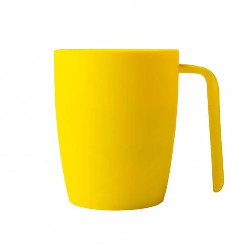 SASSCup drinkbeker geel voor trillende handen. Deze beker is speciaal ontwikkeld voor personen die problemen ervaren bij het drinken door trillende handen of een verminderde motoriek. Bijvoorbeeld personen met een verstandelijke of fysieke beperking zoals de ziekte van Parkinson, spastische bewegingen en tremoren