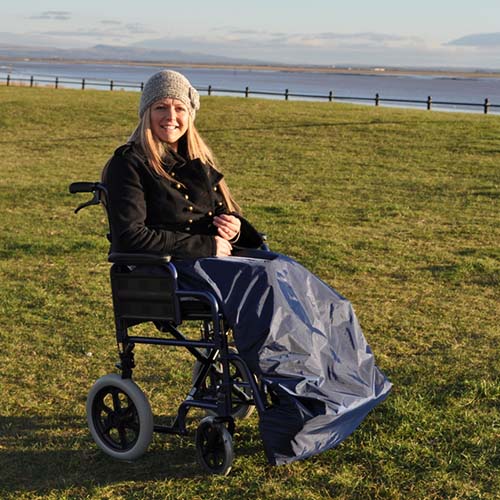 Deze wheely apron plaatst u over de bovenkant van uw benen en houdt u droog en warm. Kan met de eenvoudige gesp om uw middel of om een armsteun bevestigd worden. Heeft aan de onderzijde een elastsiche basis voor over de voetplaten. Volledig waterdicht. Ongevoerd. Ook verkrijgbaar in een Deluxe versie met een blauwe synthetische binnenvoering.